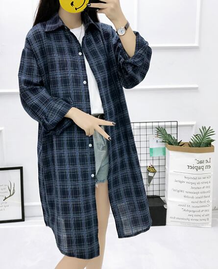 ロングシャツ レディース トップス ライトアウター 羽織 チェック柄 襟あり ロング丈 格子柄 フロントボタン カジュアル お出かけ おしゃれ 長袖 ベーシック 春夏 ゆったり ルーズ シャツ 女性