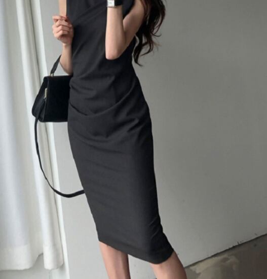 ノースリーブワンピース レディース ワンピース 膝丈ワンピース ラウンドネック シンプル 無地 きれいめ カジュアル おしゃれ お出かけ ブラウン ブラック スリムフィット プルオーバー 女性