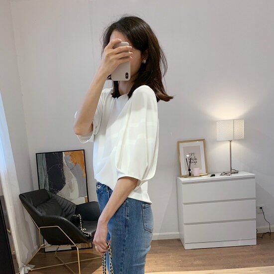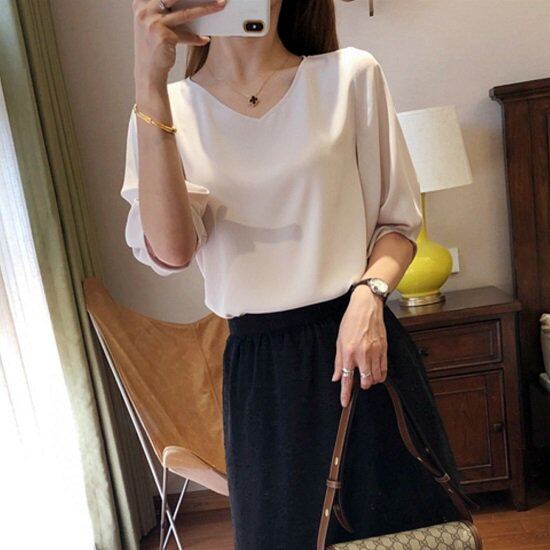 シフォンブラウス Vネックブラウス シャツ ドルマン袖 半袖 通勤 無地 大きめ ゆったり レディーストップス きれいめ Vネック 春ブラウス オフィス シフォンブラウス Vネックブラウス シャツ