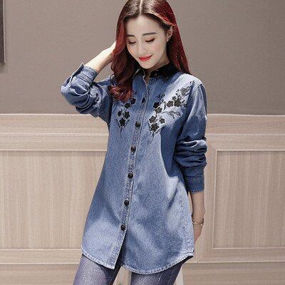 ブラウス デニムシャツ フラワー デニム 春夏 秋冬 大きめ 大きいサイズ カジュアル カジュアルスタイル 長袖ブラウス 長袖 カジュアルトップス ブラウス デニムシャツ フラワー デニム
