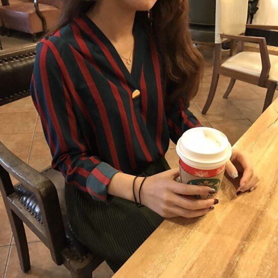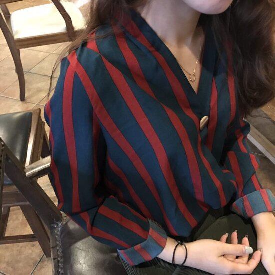 ブラウス Vネック ストライプ オフィス オフィススタイル 大きめ 大きいサイズ カジュアル カジュアルスタイル きれいめトップス 通勤 コンサバ オフィスカジュアル オフィス ブラウス Vネック