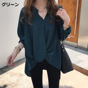 シフォンシャツ レディース 長袖ブラウス トップス シャツ ブラウス Vネック プルオーバー ボリューム袖 シンプル 無地 カジュアル お出かけ おしゃれ きれいめ オフィス 大きいサイズ ゆったり