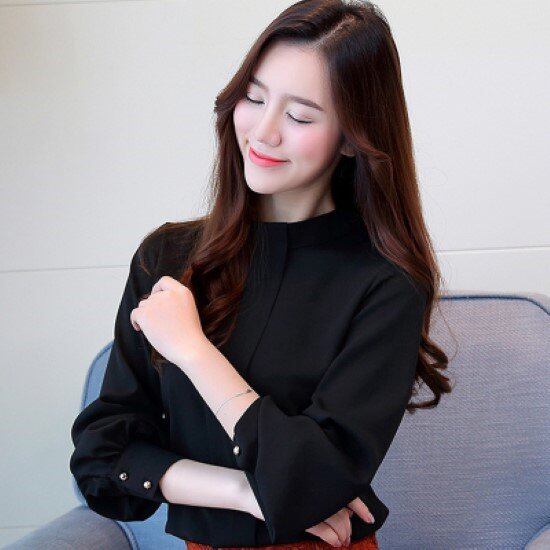 シフォンシャツ レディース ブラウス トップス スタンドカラー センターライン シンプル 無地 きれいめ カジュアル お出かけ おしゃれ フォーマル 長袖 大きいサイズ ゆったり ルーズ シック