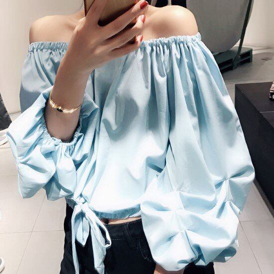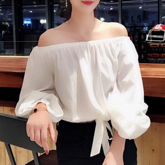 オフショルダーブラウス レディース シフォンシャツ オフショルダー ボリューム袖 パフスリーブ セクシー デコルテ シンプル 無地 カジュアル お出かけ おしゃれ ウエストリボン プルオーバー