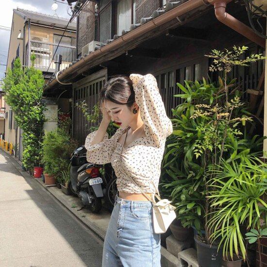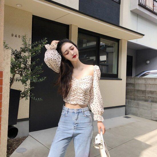小花柄なのでセクシーになり過ぎずカジュアルコーデにも♪