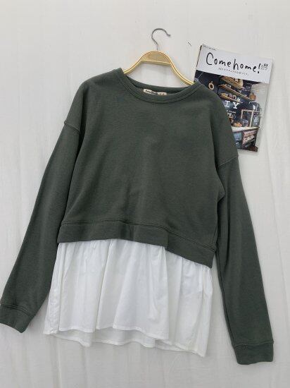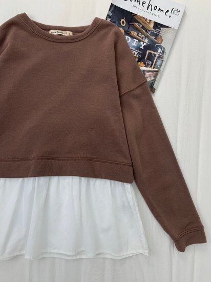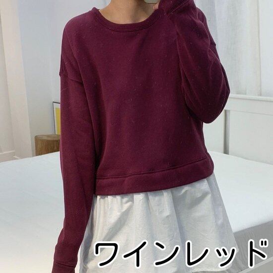 スウェット レディース 長袖 大きいサイズ プルオーバー スウェット トレーナー 春夏 春 春スウェット ドロップショルダー レイヤードスタイル フェイクレイヤード ペプラム ロング丈 くすみカラー