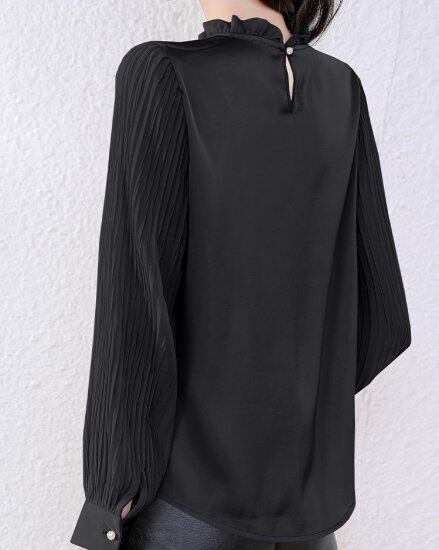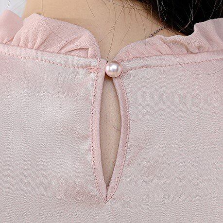 ブラウス レディース 長袖 オフィス フリル 大きいサイズ 春夏 春 夏 パールネック ビジュー シフォン ボリューム袖 フォーマル お呼ばれ 通勤 シフォンブラウス 長袖ブラウス シャツブラウス