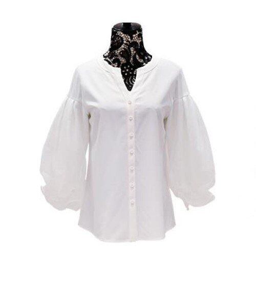 シフォンシャツ レディース トップス 長袖 キーネック Vネック 白シャツ ホワイト ボリューム袖 フロントボタン シンプル 無地 カジュアル お出かけ おしゃれ フリル 薄手 パフスリーブ 女性