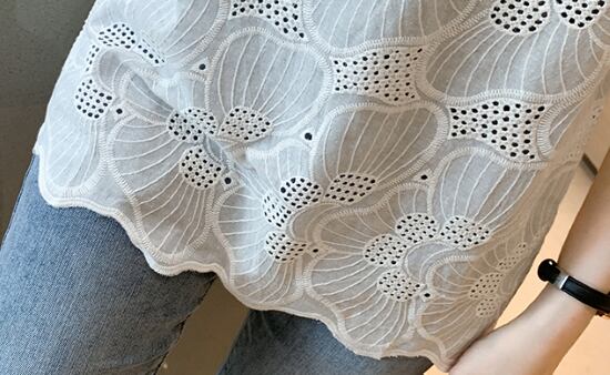 レースブラウス レディース 半袖ブラウス トップス ラウンドネック ノーカラー 総レース カジュアル お出かけ おしゃれ 白 青 ホワイト ブルー プルオーバー レーストップス ファッション 女性