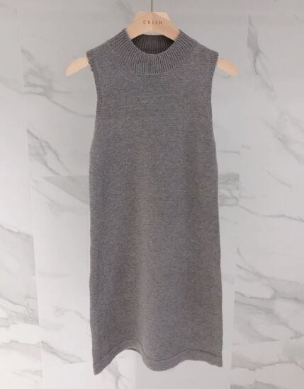 ノースリーブワンピースとVネックニットの2点セット。