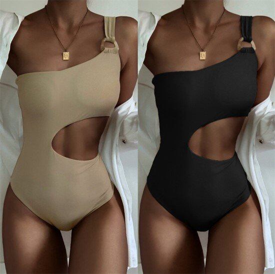 ワンピース水着 レディース 水着 カットアウトデザイン ワンショルダー セクシー カジュアル シンプル 無地 スイムウェア ビーチウェア おしゃれ 海 夏 プール ビーチ 海水浴 ブラック ベージュ