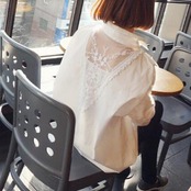背中のシースルーレースがセクシーなホワイトシャツ。