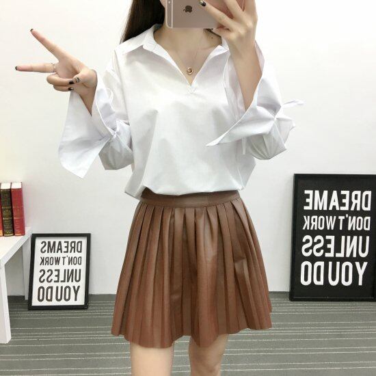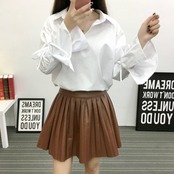 ゆったりめのフィット感とボリューム袖のホワイトシャツ。