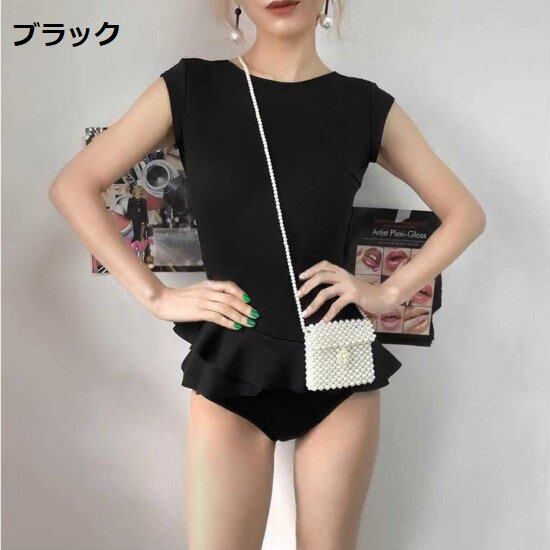 ワンピース水着 レディース 水着 フリル シンプル 無地 カジュアル おしゃれ 可愛い バックオープン ブラック ワインレッド 海 プール 夏 ビーチ 海水浴 リゾート スイムウェア ビーチウェア