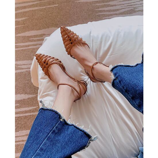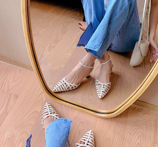 透かし編みのシースルーが夏らしく、同時にポインテッドトゥがスタイリッシュでシャープな印象。
