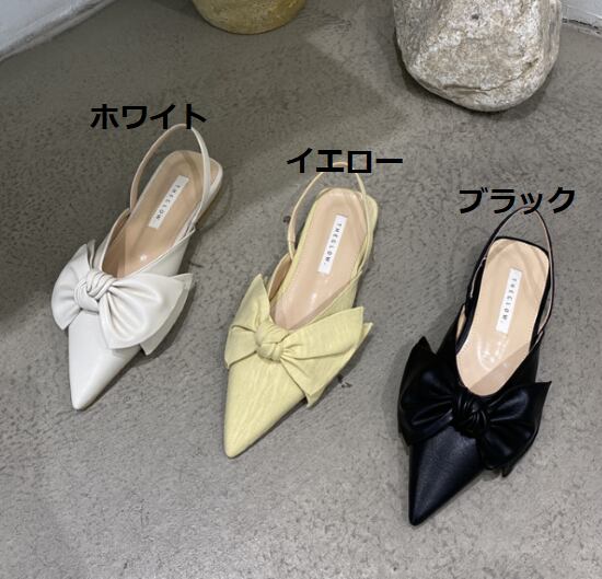 パンプス レディース 靴 シューズ ポインテッドトゥ リボン スリングバック 可愛い カジュアル おしゃれ お出かけ ローヒール 歩きやすい 疲れにくい 美脚 PU きれいめ サンダル 女性 ミュール