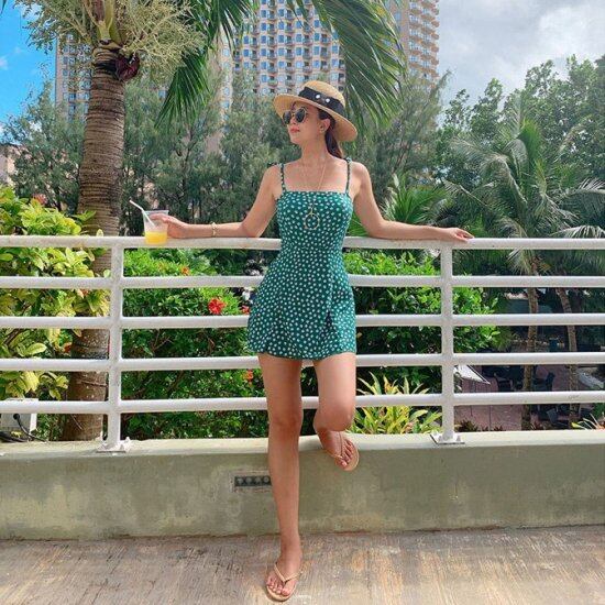 ハイウエストのスカート付きでヒップをカバーしながら脚長効果が期待できます♪