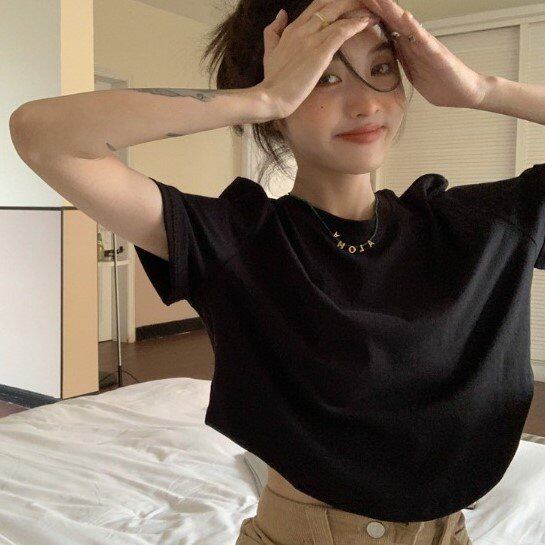 Tシャツ レディース 半袖 ショート丈 半袖Tシャツ 大きいサイズ ゆったり アシンメトリー 黒 白 白T 黒T ラウンドネック カジュアル レディースTシャツ 春夏 春 夏 ショート丈トップス 新作