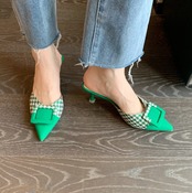 千鳥格子柄と無地の切り替えがおしゃれなミュールパンプス。