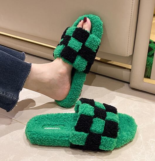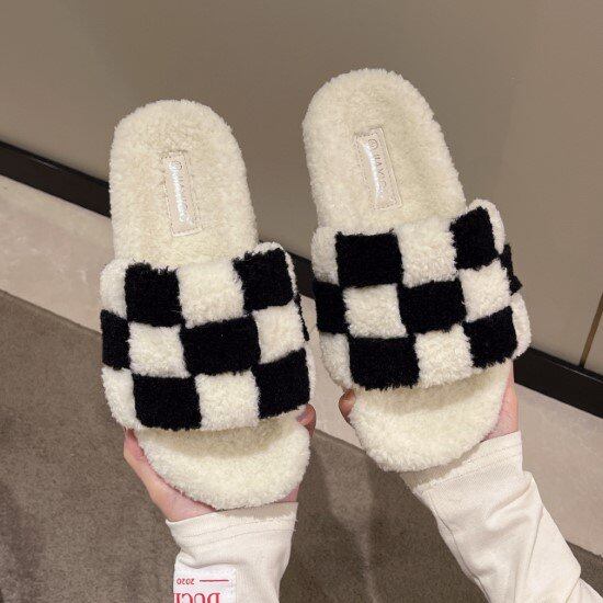 サンダル レディース 靴 シューズ ルームシューズ ルームサンダル チェック柄 ふわふわ フラットサンダル カジュアル おしゃれ 歩きやすい 疲れにくい 履きやすい バイカラー ウール サンダル 女性