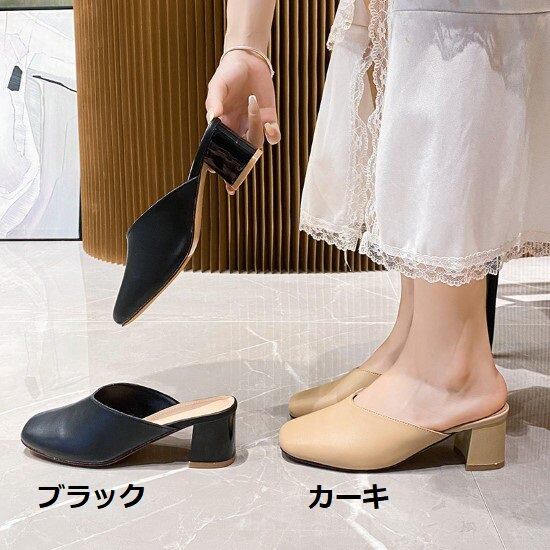 ミュール レディース 靴 シューズ サンダル 太ヒール チャンキーヒール シンプル 無地 カジュアル お出かけ おしゃれ 美脚 脚長 履きやすい 歩きやすい ハーフサンダル ミュール 女性 ミュール