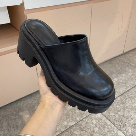 ローファー レディース 靴 シューズ サボ 厚底 PU シンプル 無地 履きやすい 歩きやすい 太ヒール カジュアル お出かけ おしゃれ ラウンドトゥ 黒 ブラック カーキ 美脚 ローファー サボ