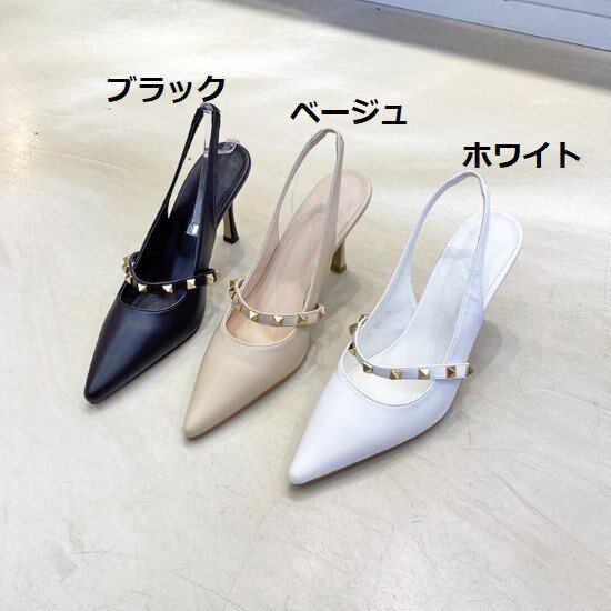 パンプス レディース 靴 シューズ スリングバック ポインテッドトゥ スタッズ 装飾 スティレットヒール カジュアル お出かけ おしゃれ きれいめ エレガント オフィス OL 通勤 フォーマル 女性