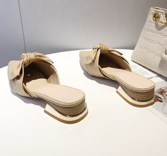 ミュール レディース 靴 シューズ ローヒール サンダル ポインテッドトゥ リボン ベージュ アプリコット カジュアル お出かけ おしゃれ きれいめ 履きやすい 歩きやすい 太ヒール ミュール 女性