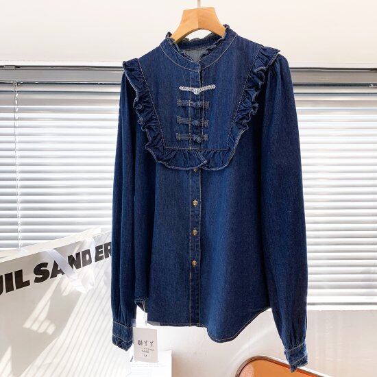 ブラウス デニムシャツ 長袖ブラウス 韓国風 大きめ 大きいサイズ カジュアル カジュアルスタイル 春 長袖 カジュアルトップス ブラウス デニムシャツ 長袖ブラウス 韓国風 大きめ 大きいサイズ