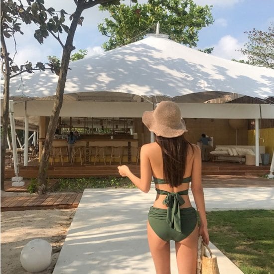 後ろ姿にも手を抜かないリボンが大人かわいいビキニ。