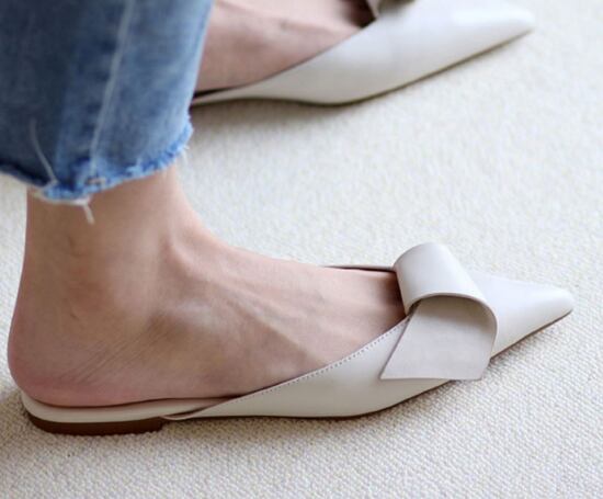 サンダル レディース 靴 シューズ フラットサンダル ぺたんこ ポインテッドトゥ スリッパ シンプル 無地 履きやすい 歩きやすい 疲れにくい カジュアル お出かけ おしゃれ 牛革 レザー サンダル