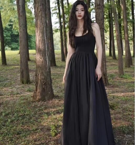ロングワンピース レディース ワンピース ロング丈 黒 ブラック ハイウエスト ノースリーブ シンプル 無地 ラウンドネック シック カジュアル お出かけ おしゃれ きれいめ ロング丈ワンピース