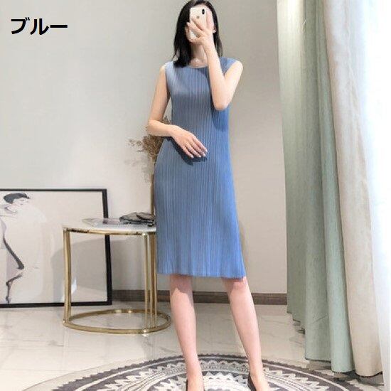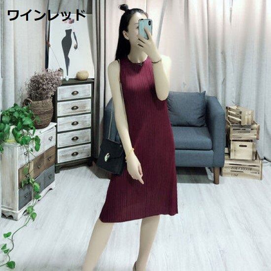 ノースリーブワンピース レディース ワンピース ラウンドネック プルオーバー 膝丈ワンピース プリーツ シンプル 無地 カジュアル お出かけ おしゃれ きれいめ 夏 ノースリーブワンピース 女性