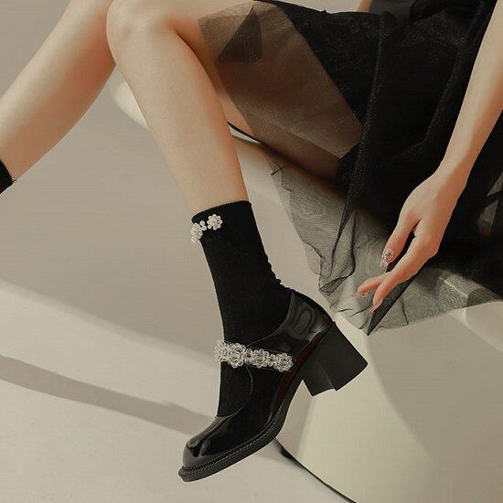 ビジューストラップが可愛いパンプス。