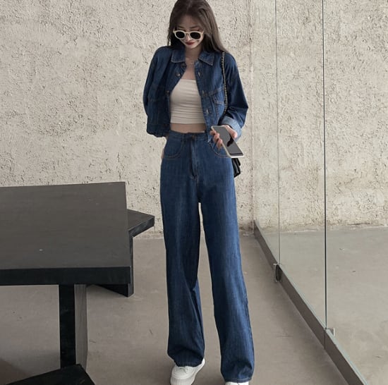 デニムセットアップ レディース ツーピース 上下セット 2点セット デニム ジャケット 羽織 Gジャン ボトムス ワイドパンツ カジュアル シンプル 無地 ベーシック 定番 お出かけ おしゃれ 女性