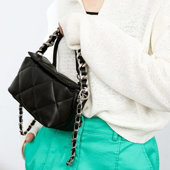 コロンとしたスクエア型がかわいいキルティングバッグ。