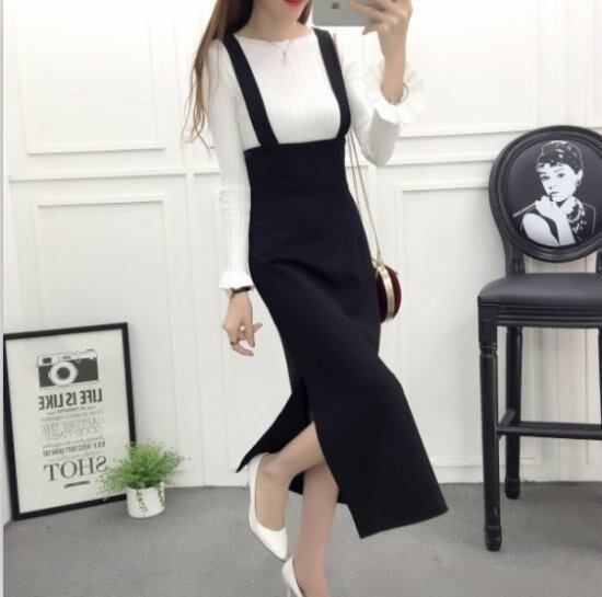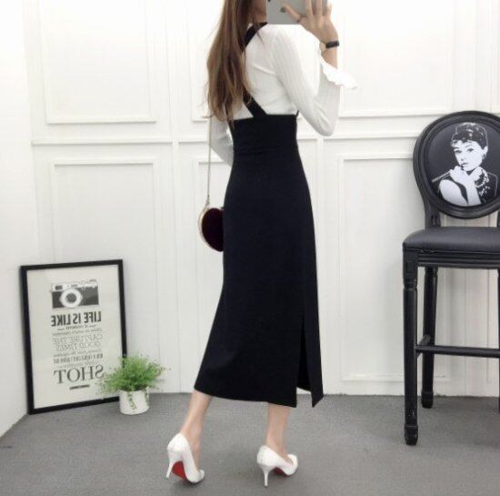 サロペットスカート レディース 大きいサイズ ジャンパースカート ジャンスカ ロング サスペンダー スカート オーバーサイズ スカート 春 バッククロス スリット 重ね着 吊りスカート サロペスカート
