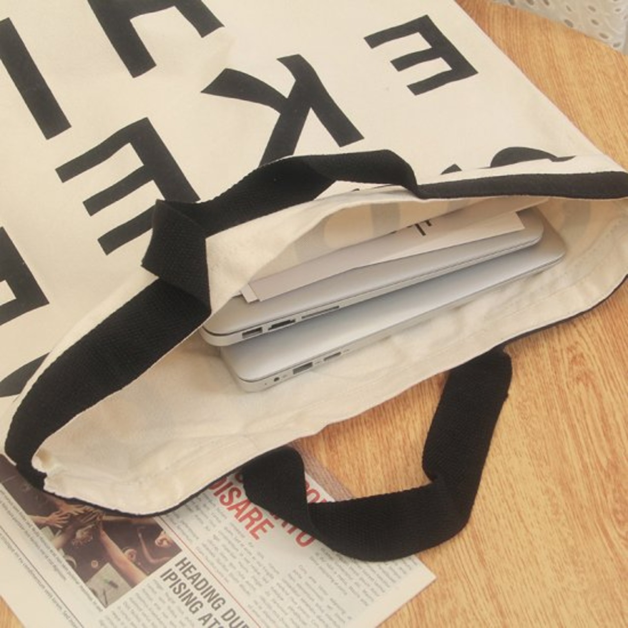 大きなアルファベット柄がcuteなキャンバスバッグ。