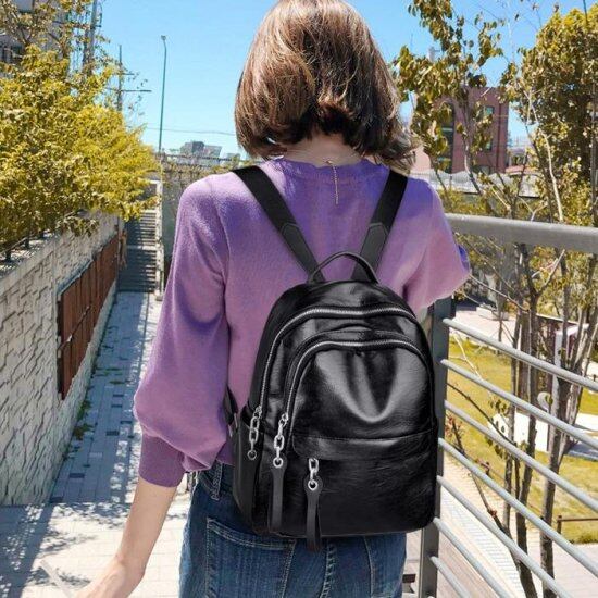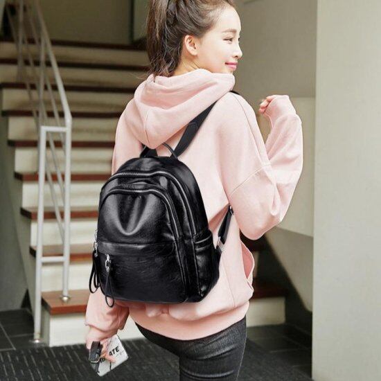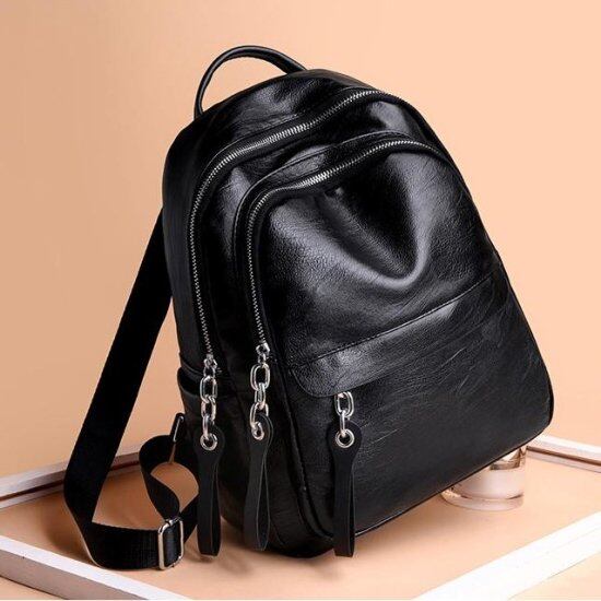 バックパック リュックサック バッグ ユニセックス レディース フェイクレザー エコレザー 大容量 シンプル 黒 ブラック シャープ シック モード きれいめ カジュアル オフィス 3way