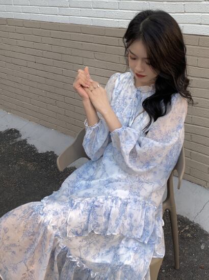 花柄ワンピース レディース ワンピース シフォンワンピース フリル シースルー 長袖 ミドル丈ワンピース 総柄 フラワー カジュアル フェミニン きれいめ おしゃれ お出かけ 可愛い 春夏 ワンピース