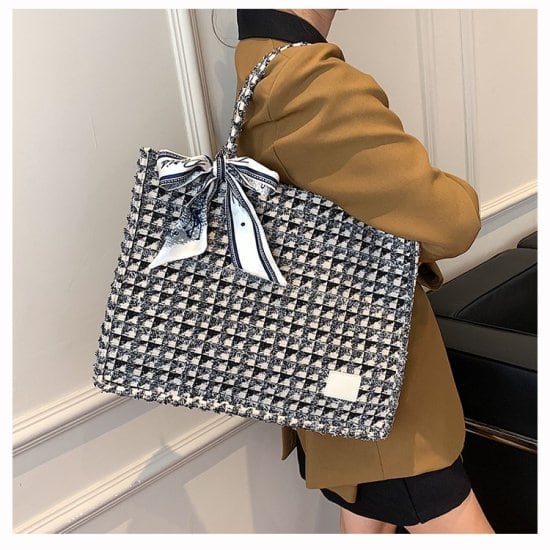 ツイード調が大人かわいい2種類のサイズ展開のトートバッグ。