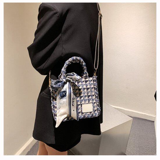 バッグ ショルダーバッグ トートバッグ レディース ツイード リボン スカーフ チェック柄 幾何学模様 ミニトート 2way レトロ クラシカル かわいい きれいめ ガーリー おしゃれ おでかけ