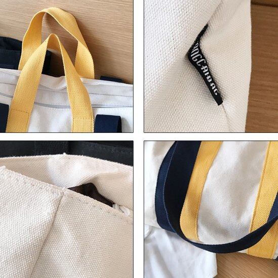 キャンバス地で普段使いしやすく、バイカラーの色使いがおしゃれ。