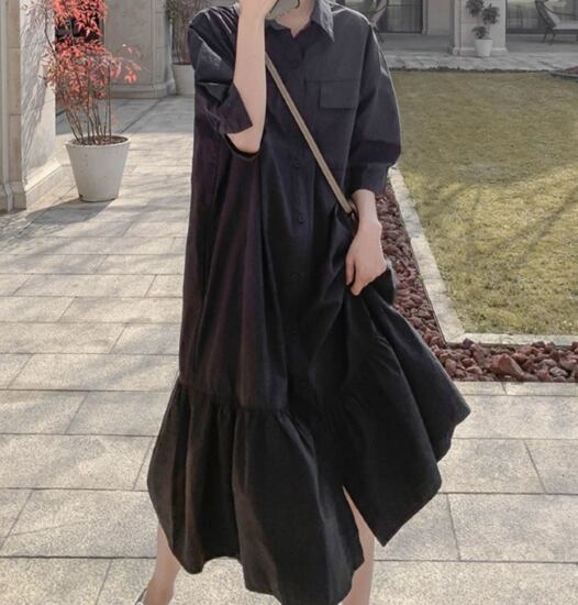 シャツワンピース レディース ワンピース 半袖ワンピース ミドル丈ワンピース 切り替え ゆったり ルーズ フロントボタン 襟あり ポロ襟 無地 カジュアル お出かけ おしゃれ 可愛い シャツワンピ 夏