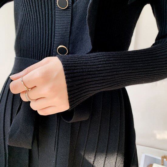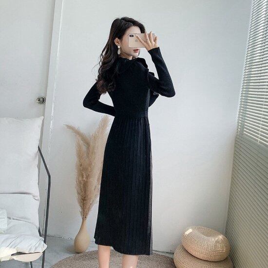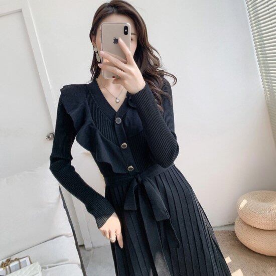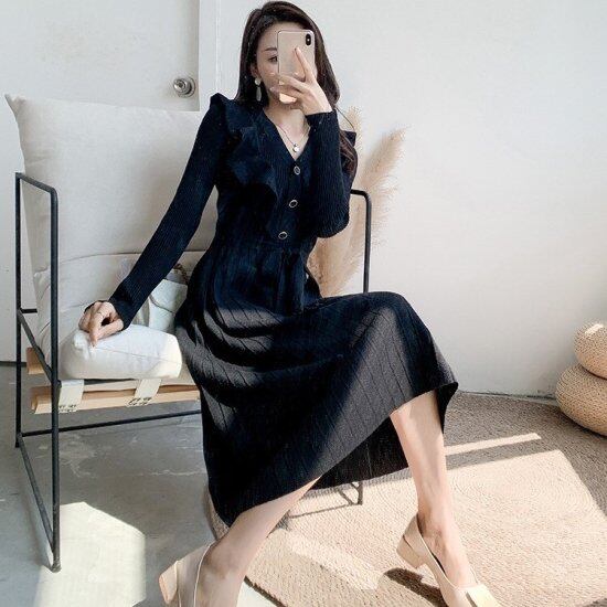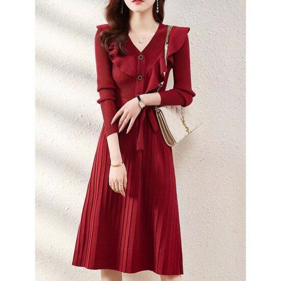 フリルがエレガントなニットワンピース。