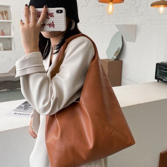 大容量のフェイクレザートートバッグです。