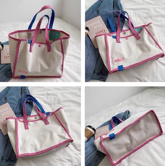 トートバッグ レディース 大容量 軽量 キャンバスバッグ キャンバス地 通学 大きめ 肩掛け ショルダーバッグ 肩掛けバッグ 配色 マザーズバッグ レディーストートバッグ キャンバストート 春新作