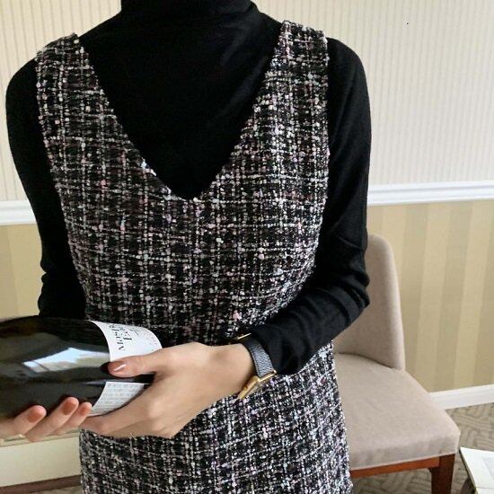 ジャンパースカート ツイード Vネック ワンピース ツイードワンピ ミモレ丈 おしゃれ フェミニン ボックスワンピ 大人ワンピ ジャンスカ セレモニー デート ジャンパースカート ツイード Vネック