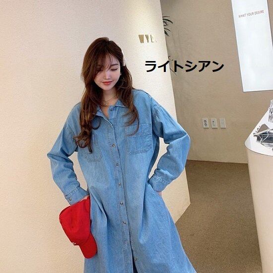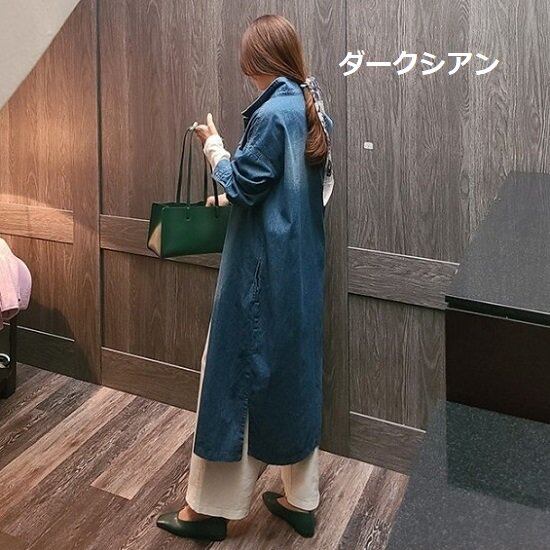 シャツワンピース デニム デニムワンピース シャツワンピ サイドスリット ロング丈 春秋 長袖 羽織り 上着 ナチュラル デニムシャツ シンプル シャツワンピース デニム デニムワンピース