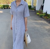 シャツワンピース レディース ワンピース ロングワンピース ストライプ 爽やか フロントボタン コットンリネン 綿麻 ナチュラル カジュアル お出かけ おしゃれ 半袖ワンピース 襟あり 春夏 女性